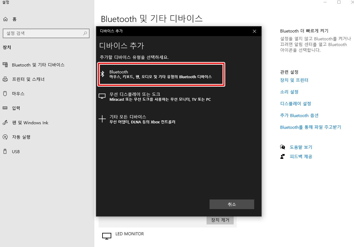 윈도우10 데스크탑에서 블루투스 이어폰 사용하기