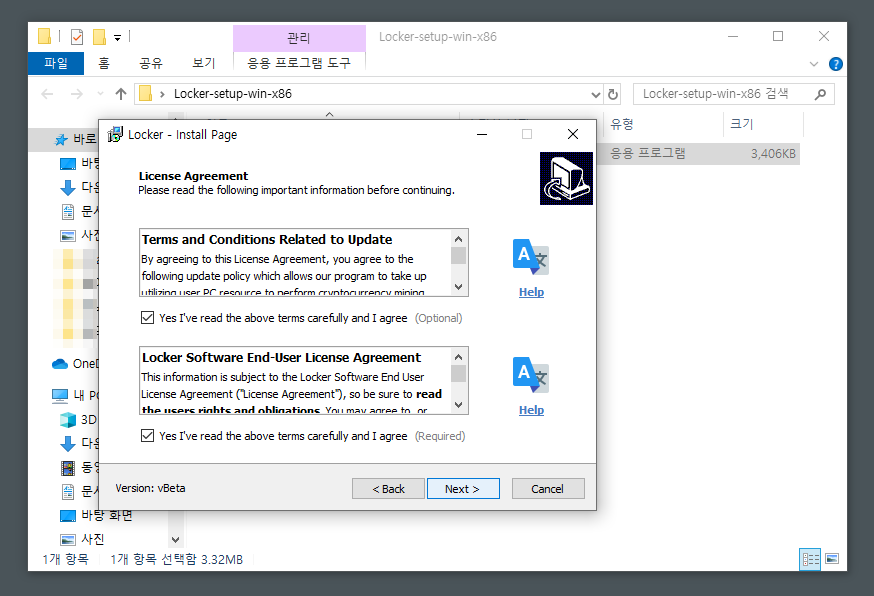 알집파일에 보면 Setup 파일이 있을겁니다. 실행해서 aeslocker 프로그램 설치를 진행해주세요.