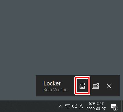 우측하단에 보면 이런 aeslocker 프로그램이 실행되어있을텐데 사진처럼 + 아이콘을 눌러서 파일을 추가해주세요