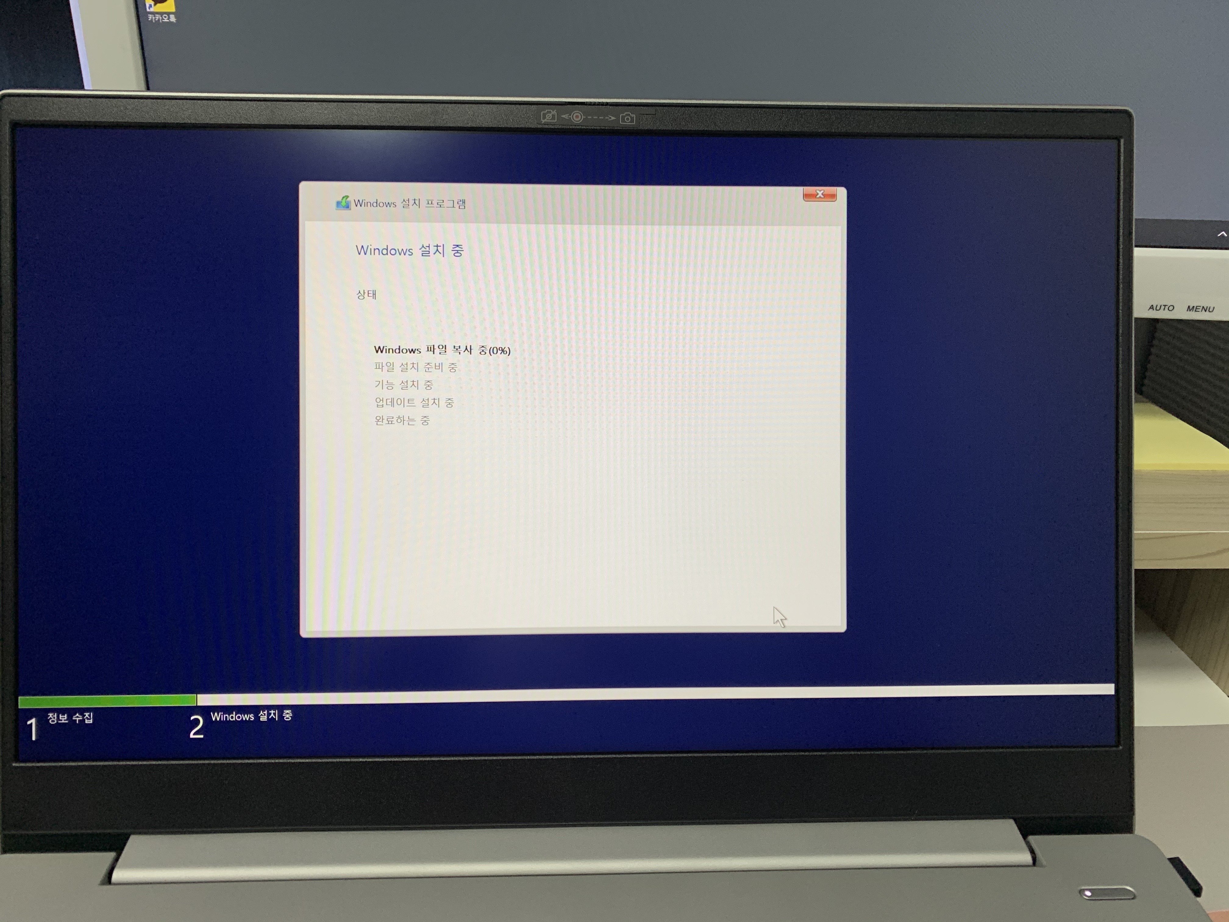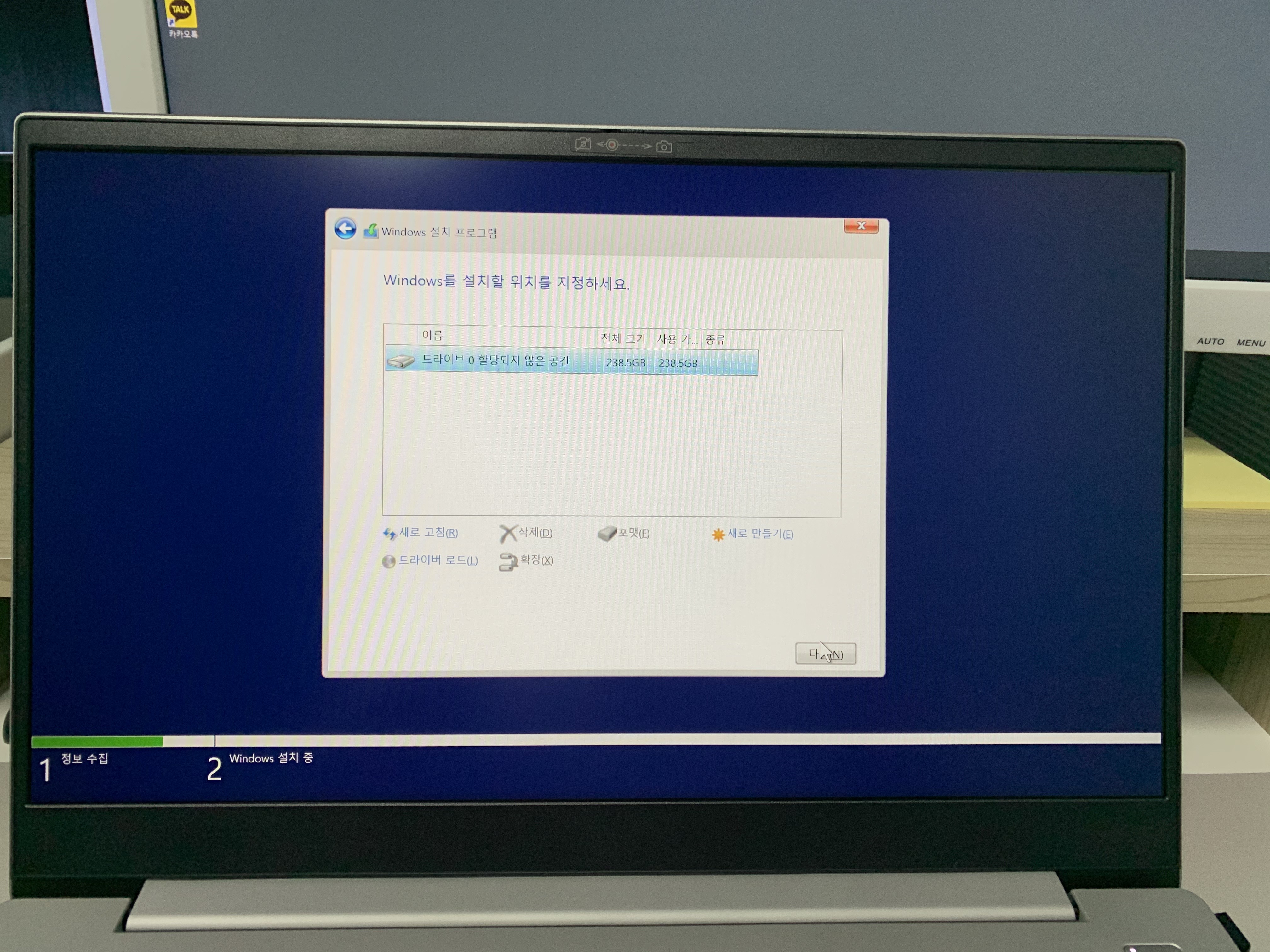 설치하고 싶은 디스크를 선택하면 이전과는 다르게 윈도우 설치가 원할하게 진행되는것을 볼 수 있을겁니다.