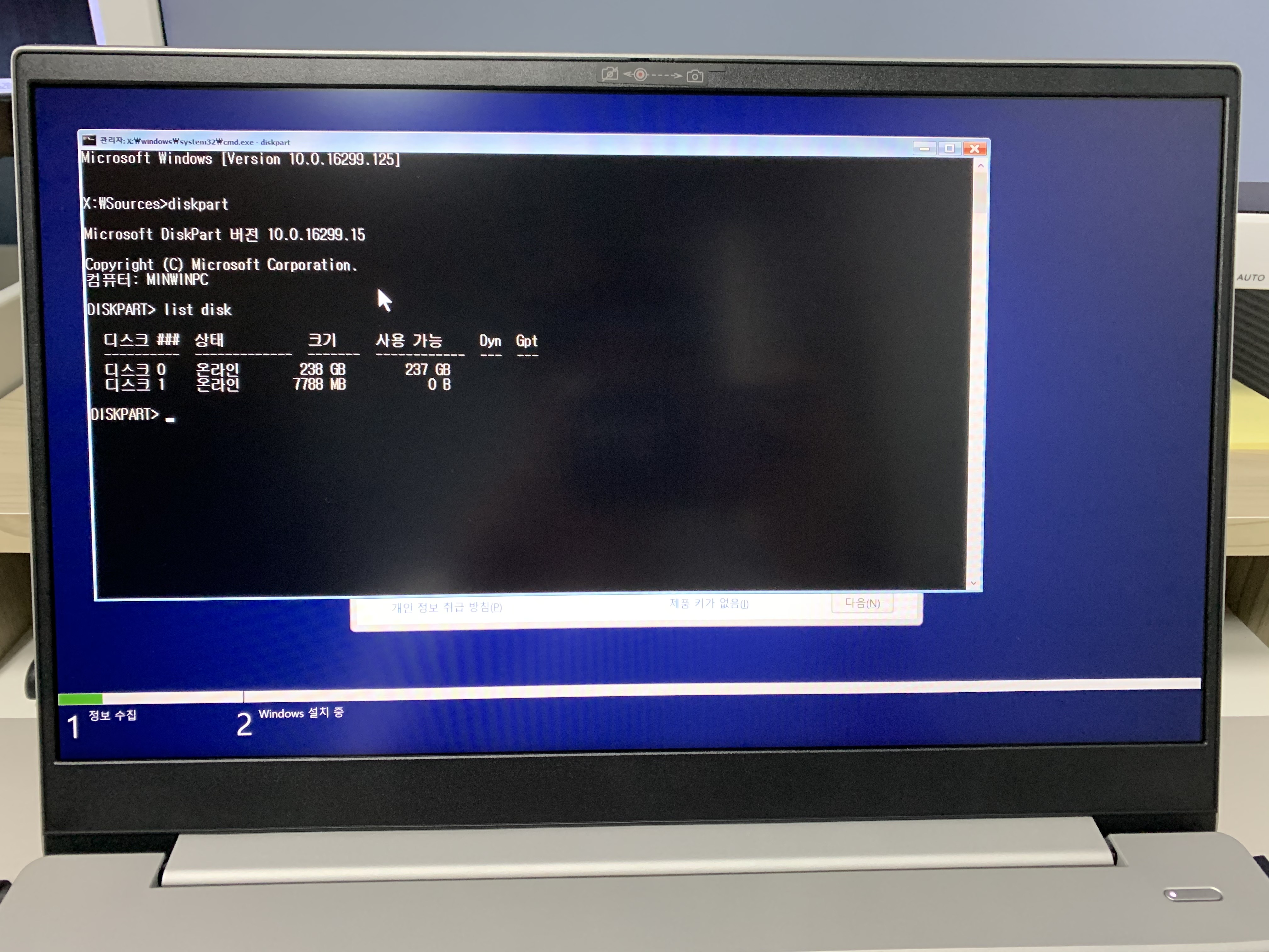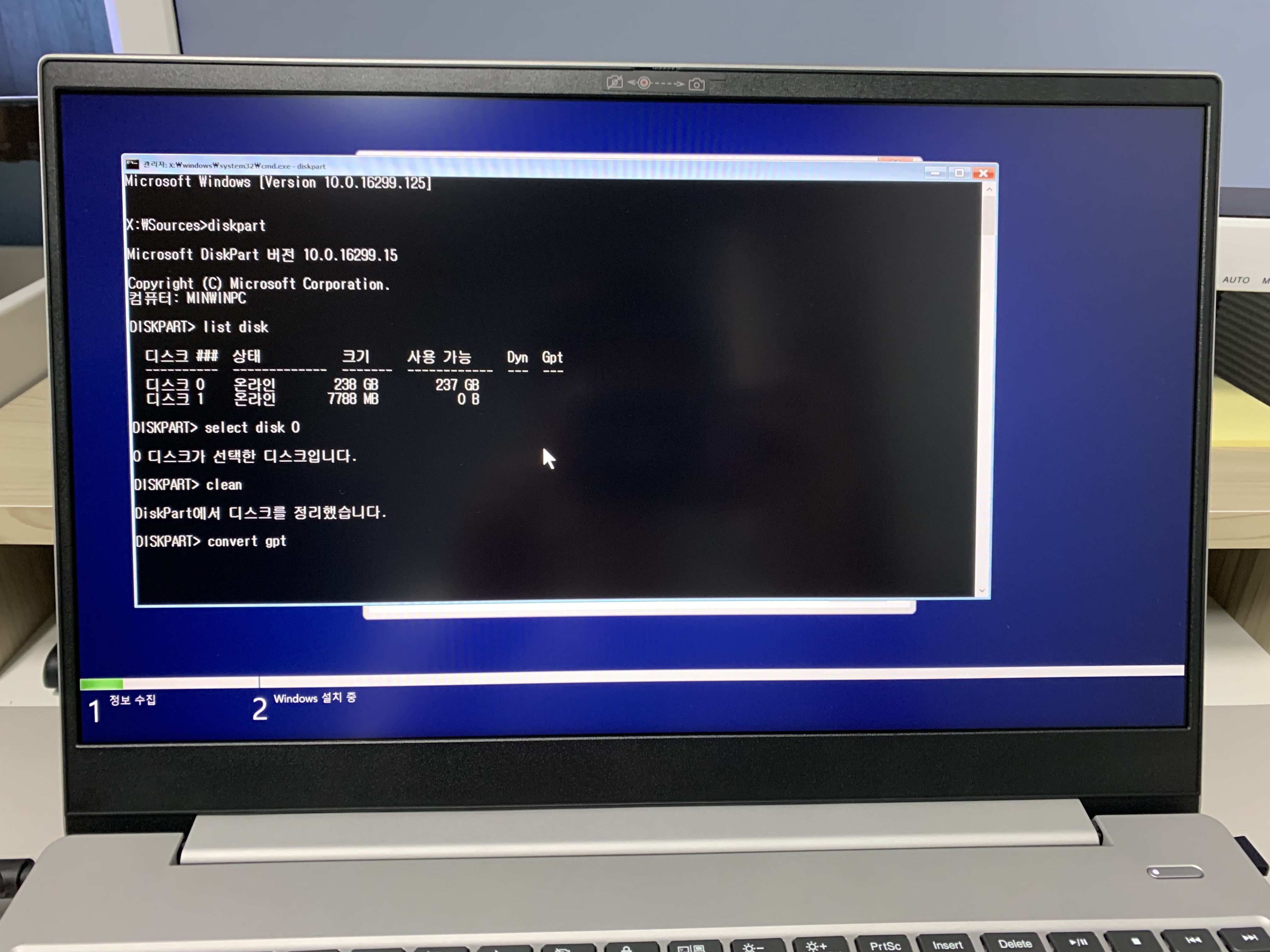 마지막으로 윈도우가 정상적으로 설치되는 과정의 사진을 첨부해봤습니다. MBR 방식에서 GPT방식으로 디스크설정을 변경하는 방법은 한페이지로도 쉽게 요약이 가능할 듯 한데 상세한 설명을 위해서 여러 사진과 함께 설명을 해보았습니다. 다들 도움이 되셨길 바라겠습니다.