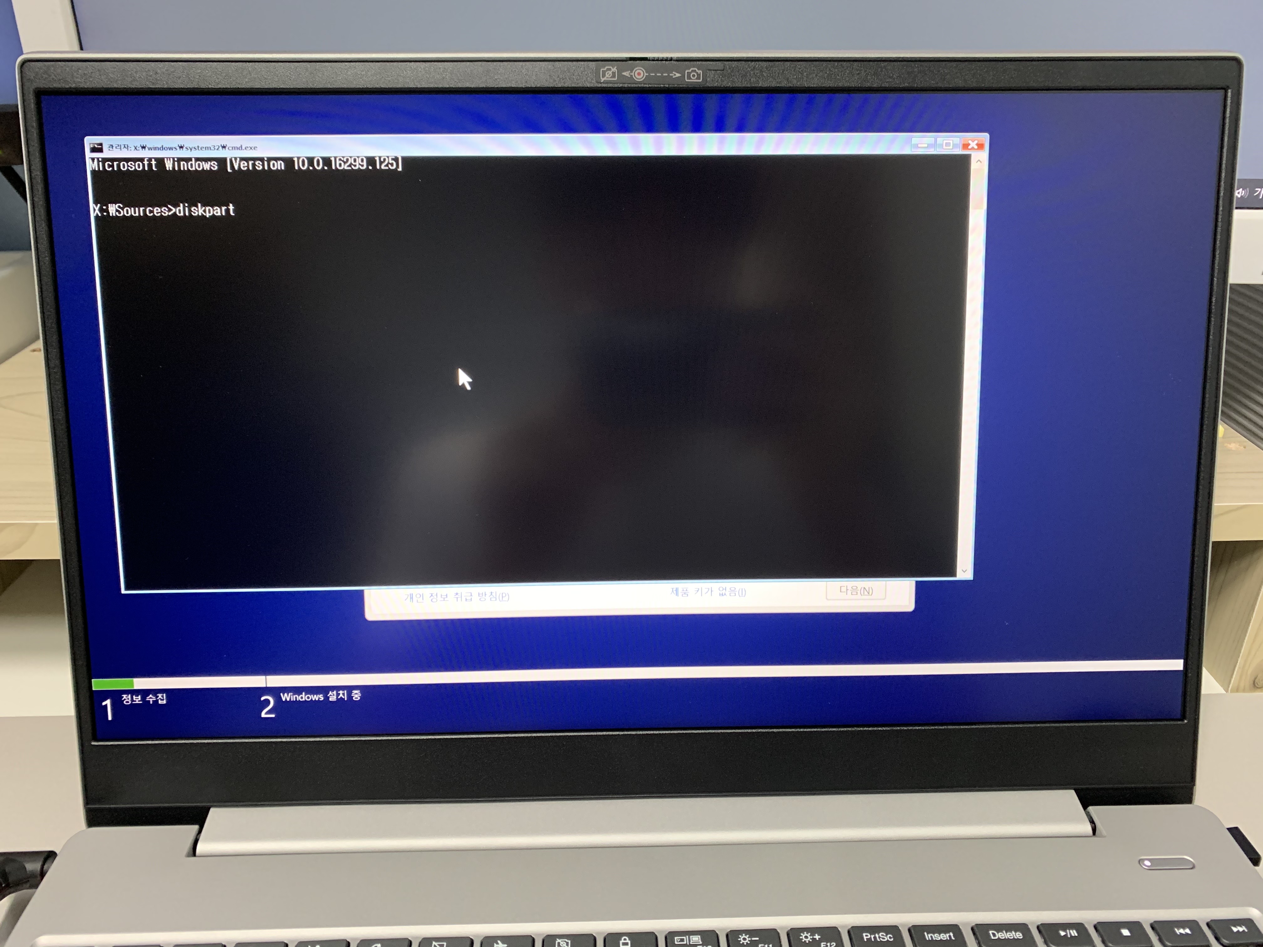 먼저 명령 프롬프트창에 'diskpart' 라고 입력을 해주세요 모든 명령어는 입력후 엔터를 눌러주시면 됩니다.