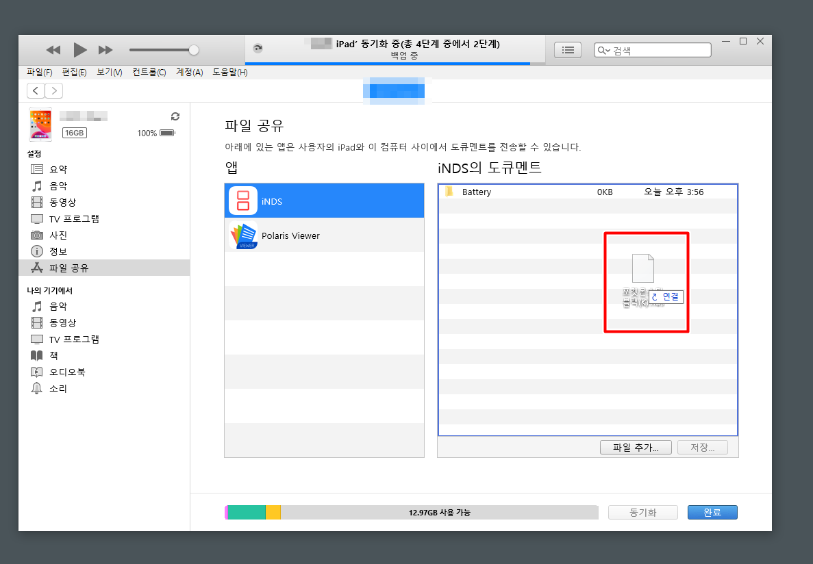 넣는 방법은 이렇게 아이패드 또는 아이폰과 아이튠즈를 연결해줍니다. 그다음으로 파일공유를 클릭해주세요