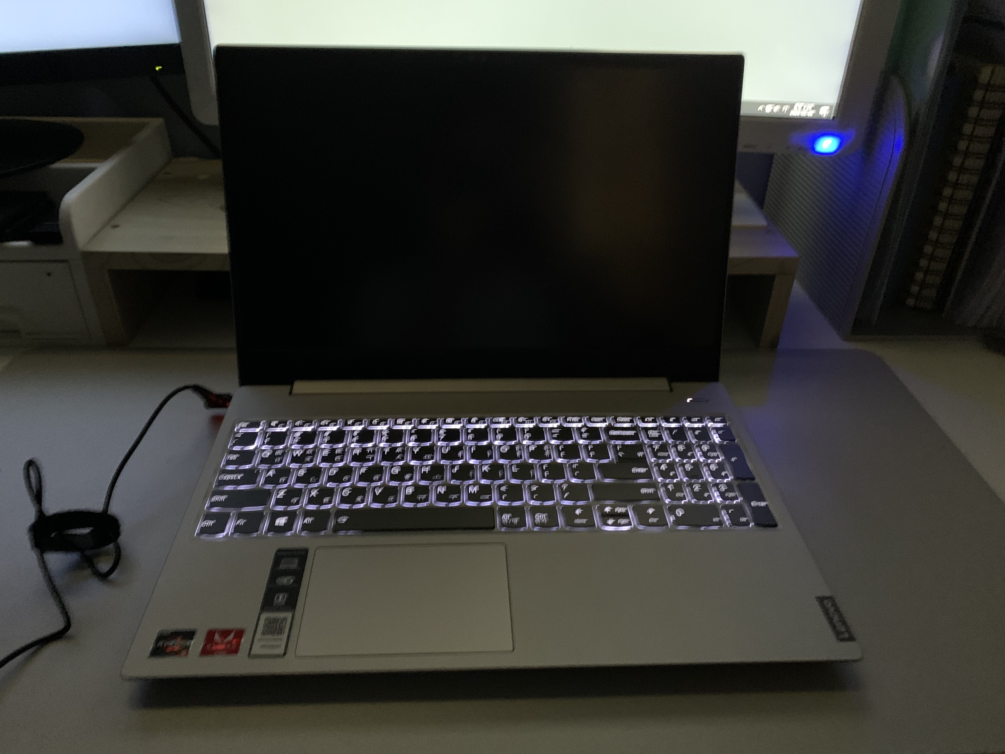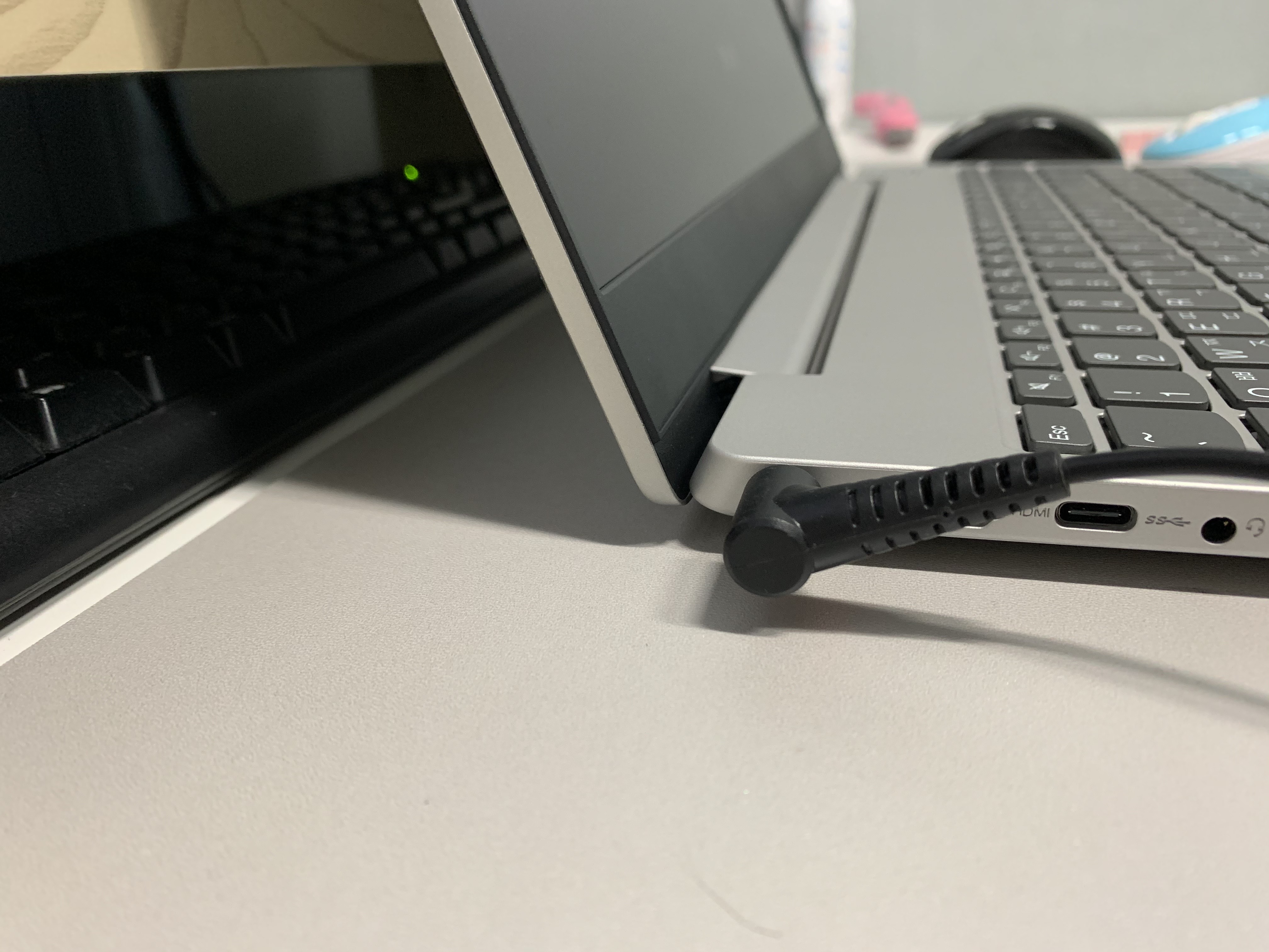 노트북을 켜보려했더니 충전이 하나도 안돼있어서 충전케이블을 연결해주었습니다.