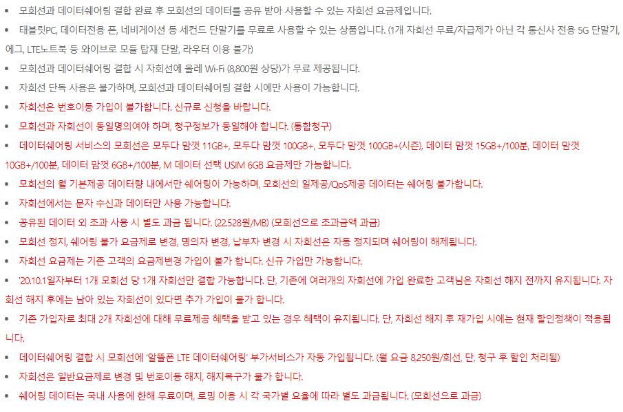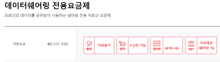 그리고 아무래도 가장많은 관심을 가지실 데이터쉐어링 전용요금제를 살펴보면