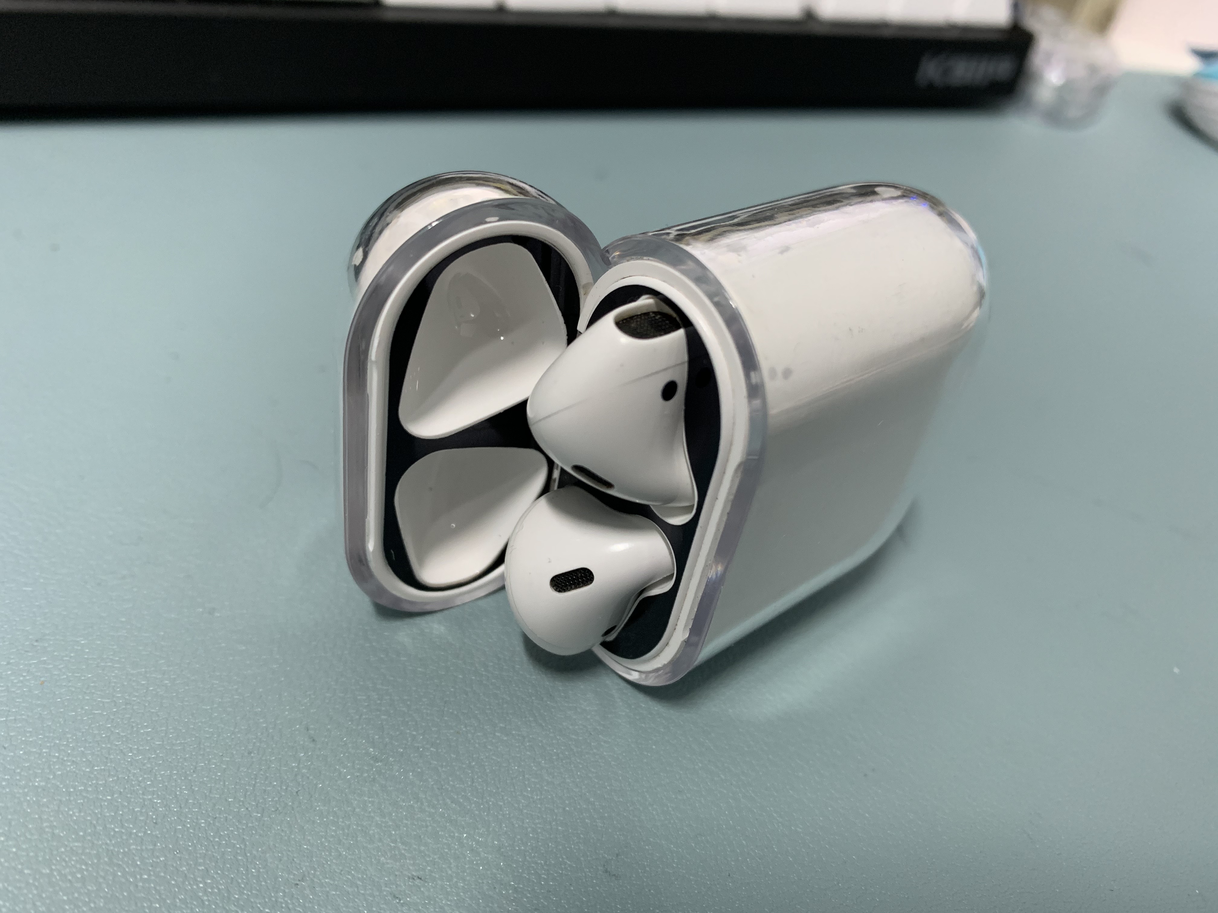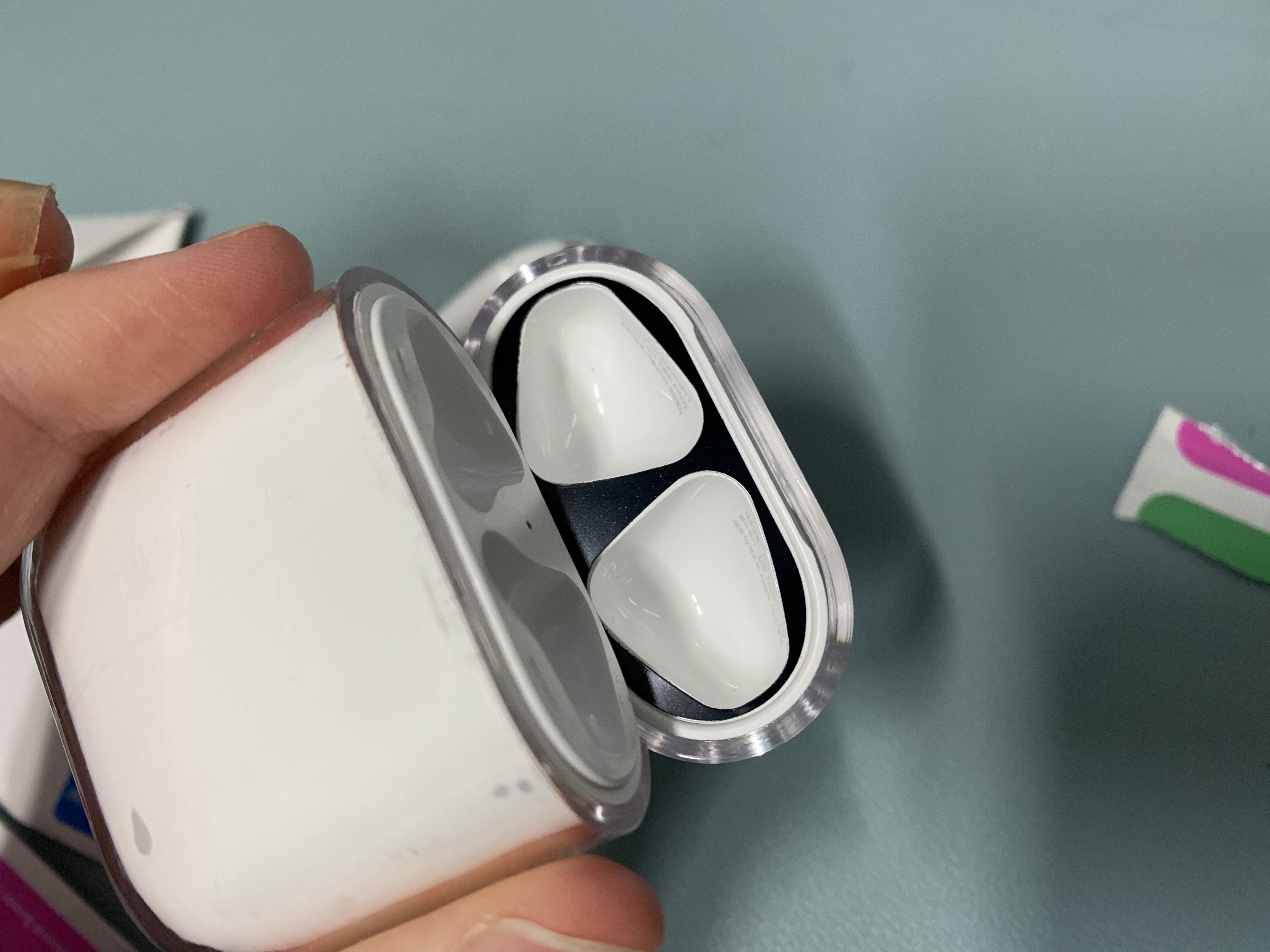 이제 모양에 맞게 철가루 방지스티커를 부착해주시면 됩니다. 아무래도 에어팟 뚜껑쪽이 붙히기가 어렵다보니 얇은 드라이버 등으로 모양을 맞춰가면서 붙히시면 그나마 나을 것 같네요. 본체 부분같은 경우는 힌지가 비교적 쉽게 부착할 수 있었습니다.