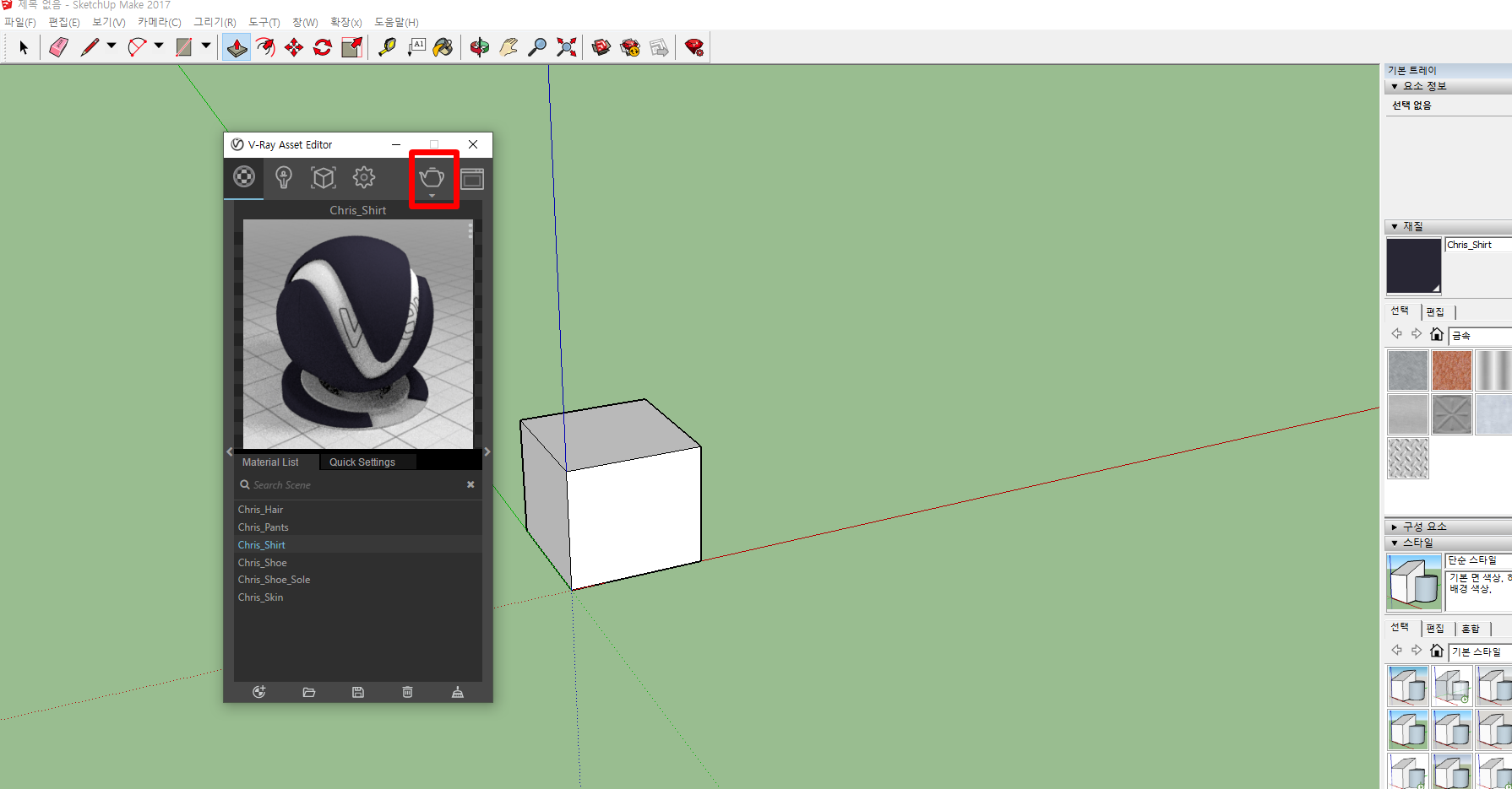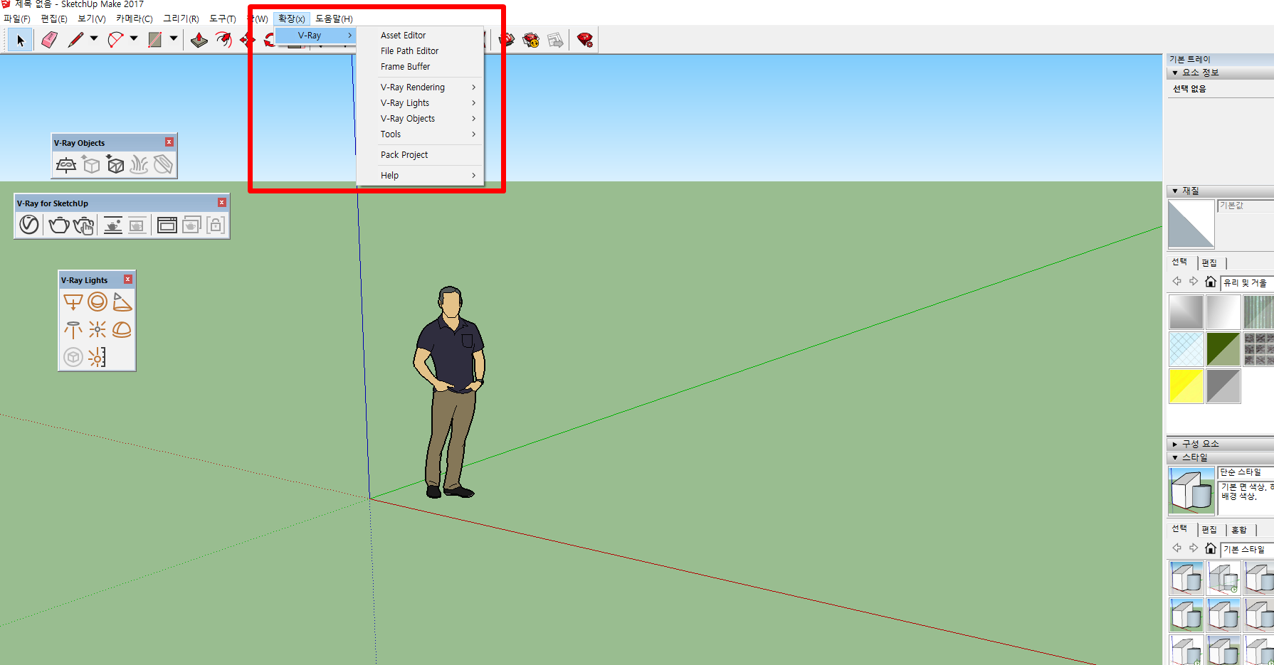 만약에 저처럼 브이레이 도구들이 바로 나와있지 않은 경우에는 확장- v-ray를 통해서 한번 실행을 해보는 것도 좋은 방법이라고 생각이됩니다.