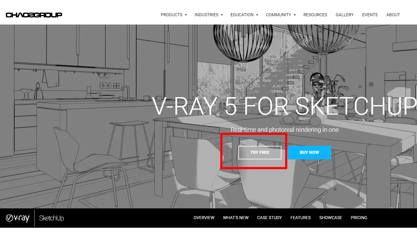 브이레이(v-ray)는 삼차원 컴퓨터 그래픽 소프트웨어를 이용한 렌더링 프로그램으로 카오스그룹(CHAOS GROUP)에서 개발하였습니다. 우리가 흔히 말하는 렌더링에 사용되는 가장 대표적인 프로그램이라고도 할 수 있고, 스케치업을 사용하시는 분들이 모델링한 작품을 렌더링하는데 자주 사용이 되고는 합니다. 하지만 브이레이를 정식으로 결제해서 다운로드하기에는 가격이 정말 높기 때문에 직업적으로 사용하시는 분들이 아니라면 쉽게 결제하기에는 어려움이 따를거라는 생각이 듭니다. 저같은 경우도 과제를 제출하기 위해서 사용해보려고 했는데 정식결제는 어렵고 학생인증을 통해 결제를 하더라도 10만원정도의 비용이들기때문에 사용이 어려웠습니다. 하지만 이런분들을 위해서 카오스그룹에서 계정을 만들면 30일간의 체험판버전을 제공하기때문에 30일간 무료로 스케치업에서 브이레이를 사용할 수 있습니다. 그럼 이제 스케치업 브이레이 체험판 다운로드하는 방법에 대해서 설명해드리겠습니다. 먼저 아래링크로 이동해주세요.