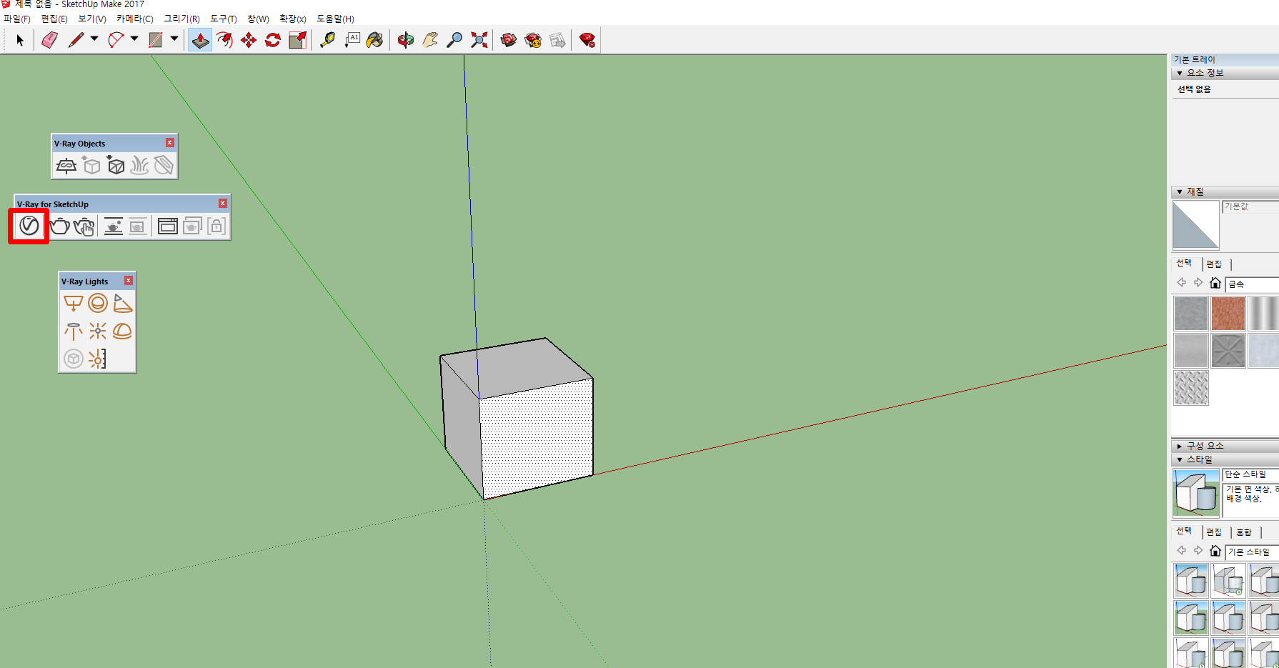 한번 브이레이를 사용해보기 위해서 네모 상자를 그려보았습니다. 사진처럼 아이콘을 클릭하면
