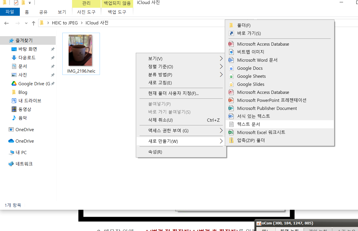 기존에는 위에 사진처럼 파일형식이 HEIC 파일 형식으로 돼있는걸 볼 수 있습니다.