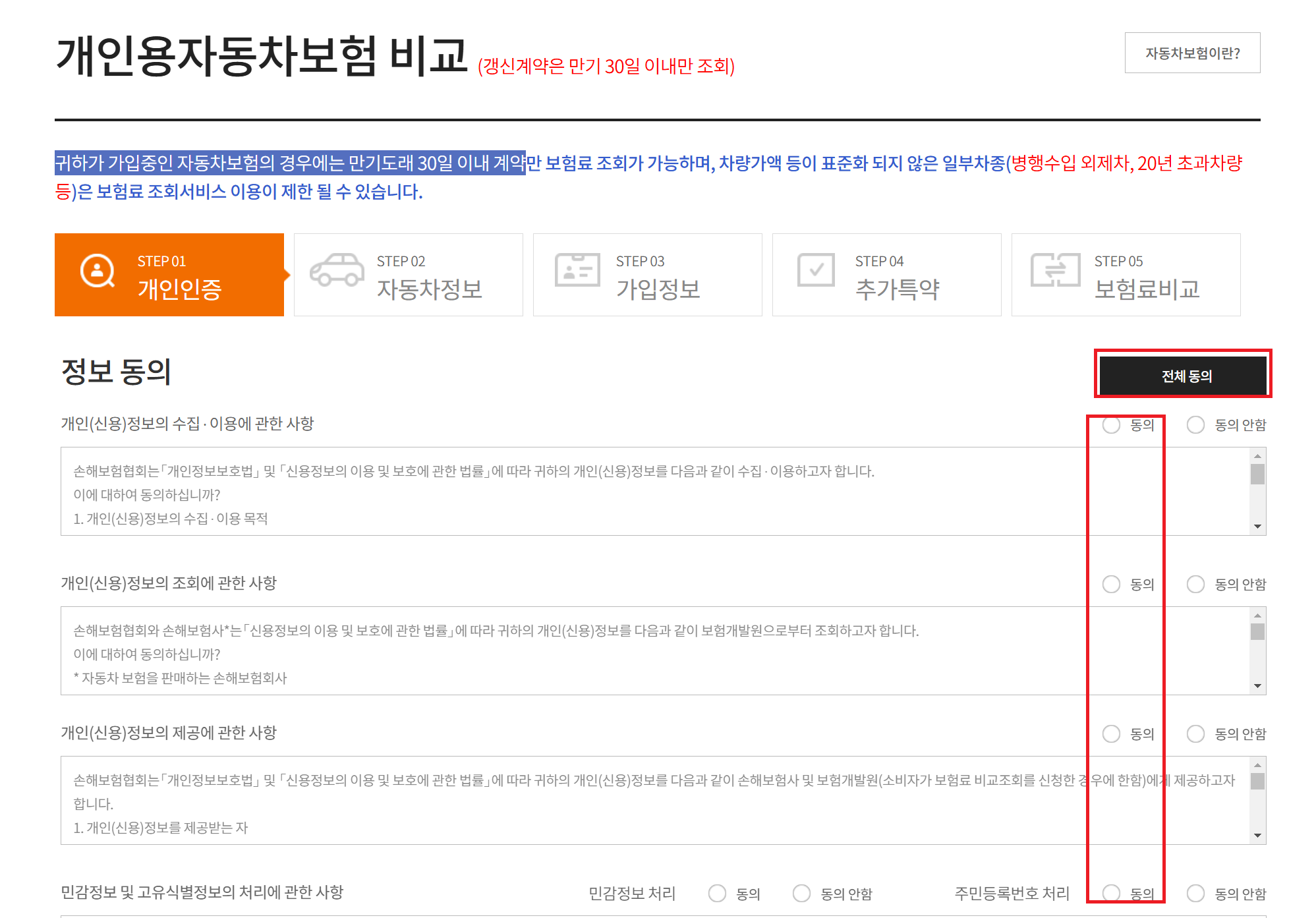 갱신계약 또는 신규계약 중 하나를 선택합니다. 기존 보험 만기 30일 이내면 갱신계약을 선택하세요. 첫 가입이라면 신규계약을 선택하면 됩니다.