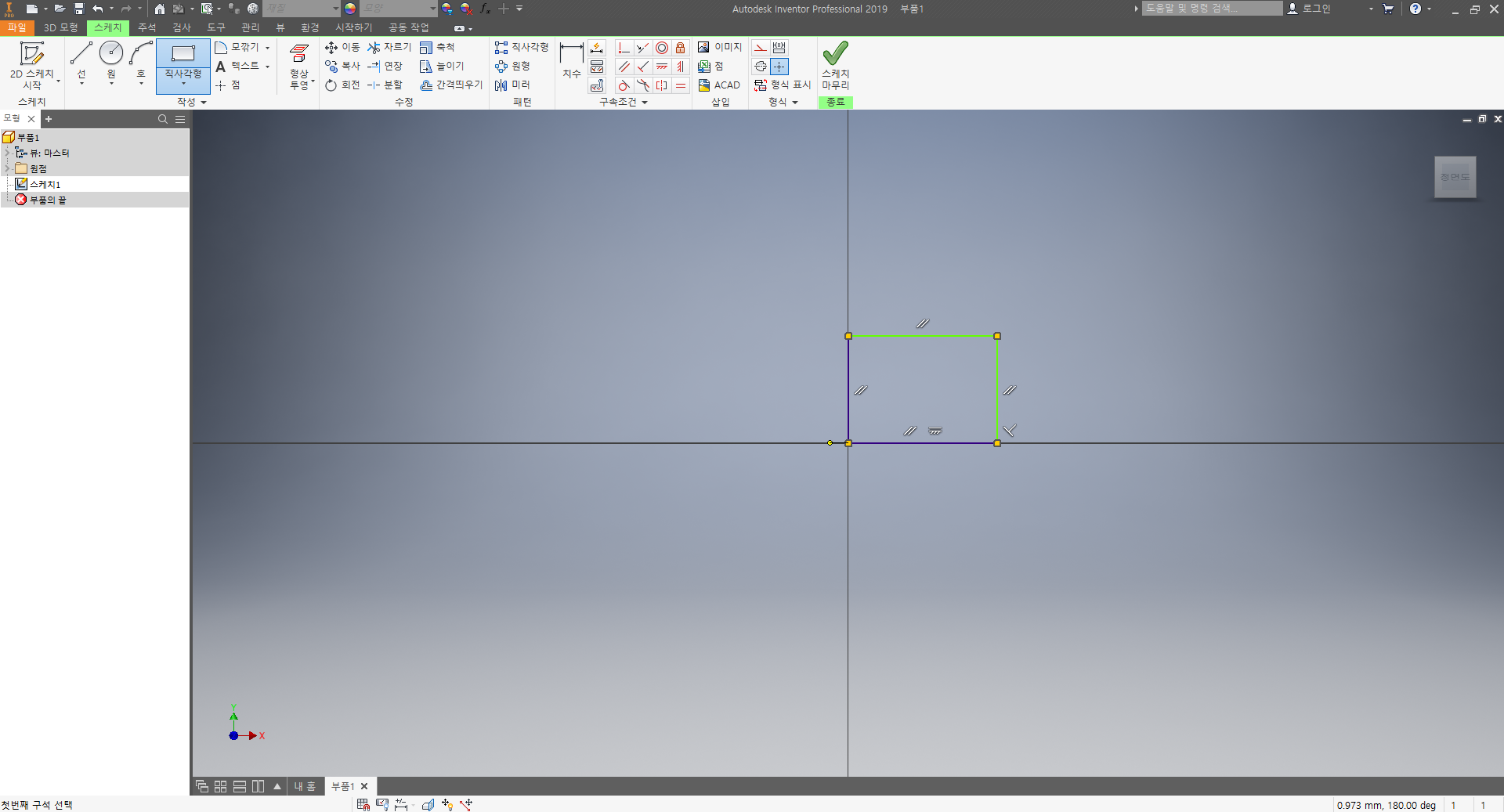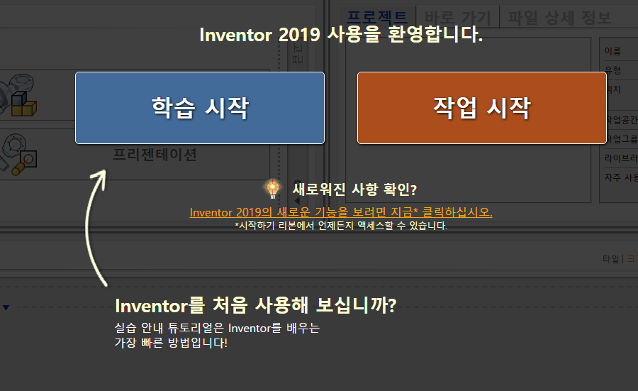 이제 본격적으로 인벤터를 사용할 수 있는 화면이 나왔습니다.