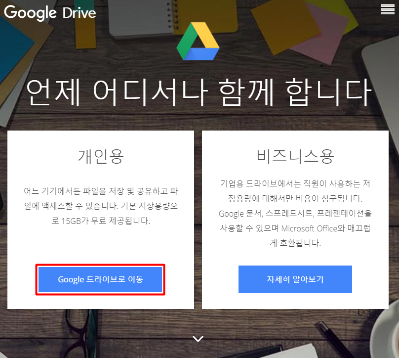 오늘은 구글드라이브를 통해서 사진을 공유하는 방법을 알아보도록 하겠습니다. 다들 스마트폰이나 유튜브등의 사용으로 구글 계정은 하나쯤 가지고 계실꺼라고 생각됩니다. 구글계정만 가지고 있다면 구글 드라이브를 15GB무료 사용이 가능한데요. 여기서 사진이나 동영상 문서등을 올려서 단순히 보관 다운로드도 가능하며 다른사람들과 공유도 쉽게 가능하답니다. 그렇다면 공유기능을 사용하기위한 방법을 알려드릴테니 천천히 따라와 보시기 바라겠습니다. 먼저 아래링크로 이동해주세요.