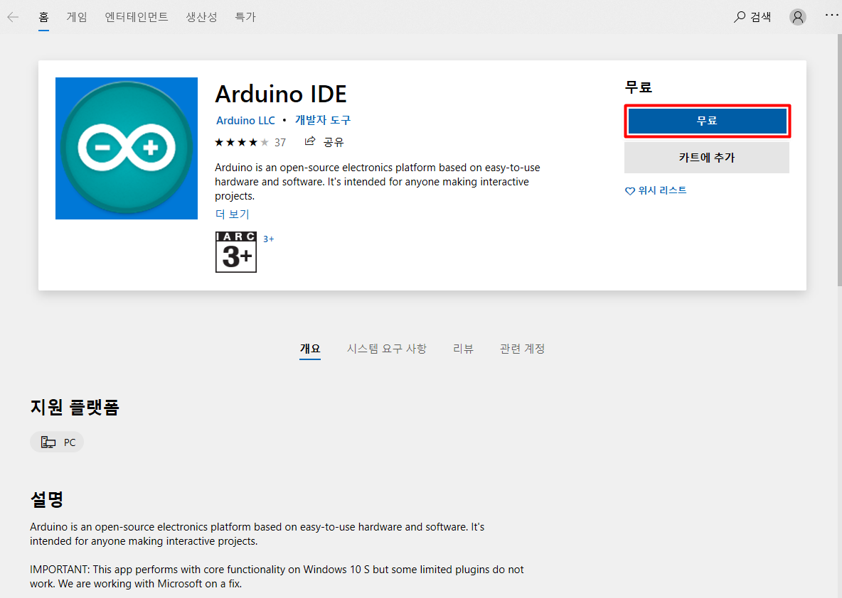 클릭했다면 위 사진처럼 화면이 나오면서 다운로드를 할 수 있는데 '무료' 아이콘을 클릭해서 어플을 설치해줍니다.