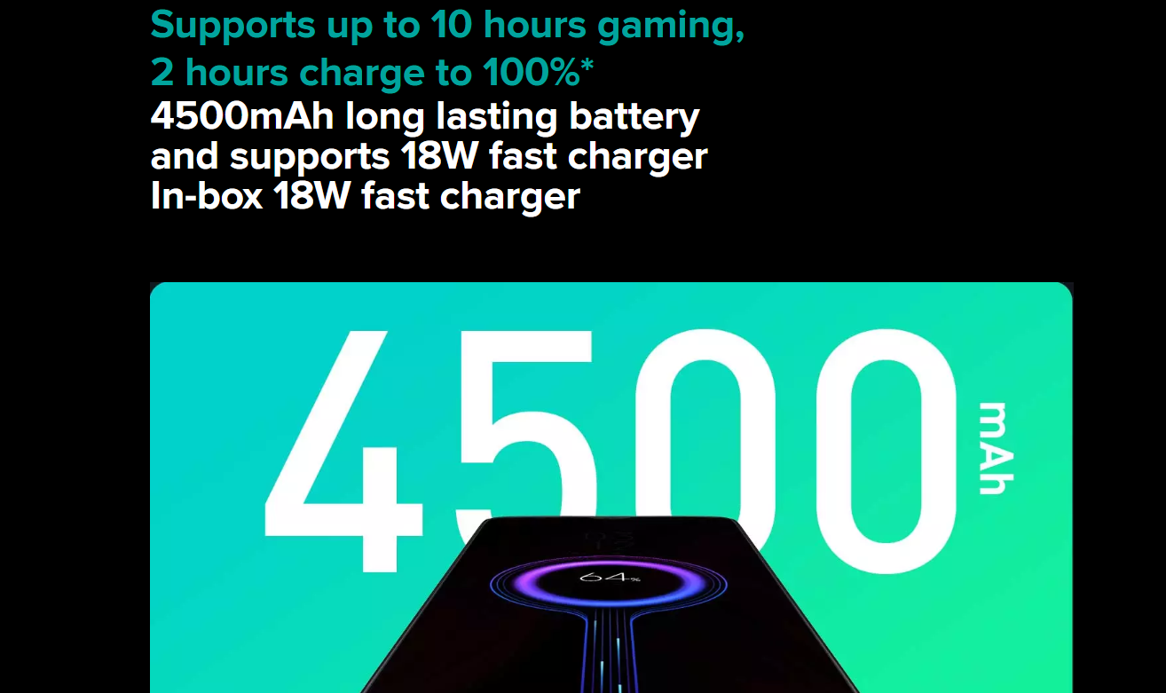 배터리는 4500mAh의 배터리를 탑재하였으며 18w의 fast charger 즉 고속충전을 지원한다고 합니다. 요즘 나오는 스마트폰 답게 고용량의 배터리를 탑재하였습니다.