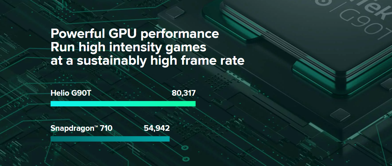 다음으로 프로세서는 힐리오 G90T라는 프로세서가 탑재되었는데 스냅드래곤에 비해서 널리 사용되고 검증된 프로세서는 아니다 보니 여기저기서 말이 많기도 합니다. 하지만 샤오미에서 설명하는 위 사진에서는 비교한 스냅드래곤 710보다 높은 성능을 보여주며 대략 스냅드래고 730과 비슷한 성능을 보인다고 합니다.