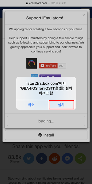 그리고 사파리를 종료해서 홈화면으로 나가보면 위와같이 어플이 설치되고 있는걸 볼 수 있습니다. 하지만 다운로드가 완료되고 어플을 실행해보면