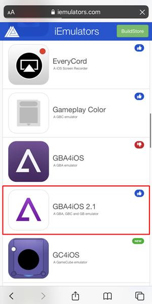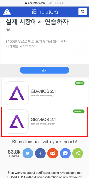 어플이 여러게 나오게 되는데 그중에서 GBA4iOS 2.1이라는 어플을 클릭해줍니다.