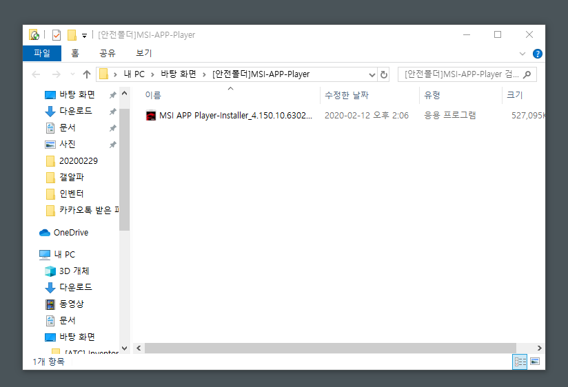 압축을 풀면 확장자명 exe인 프로그램이 있는데 MSI 앱플레이어 설치파일입니다. 클릭해서 실행해주세요.
