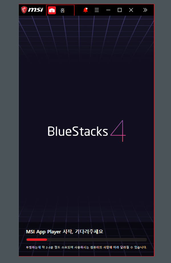 설치가 완료되면 MSI 앱플레이어 초기설정이 진행됩니다.